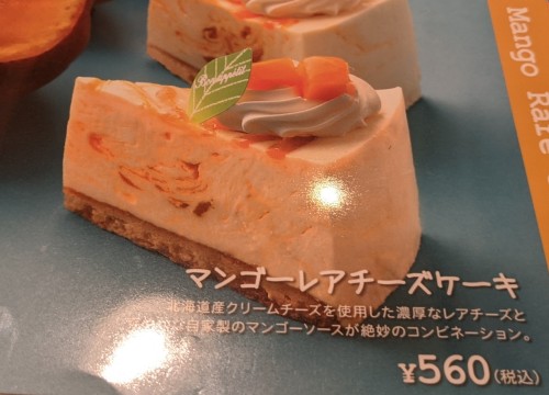 筆者は「マンゴーレアチーズケーキ(税込560円)」を頼みます。