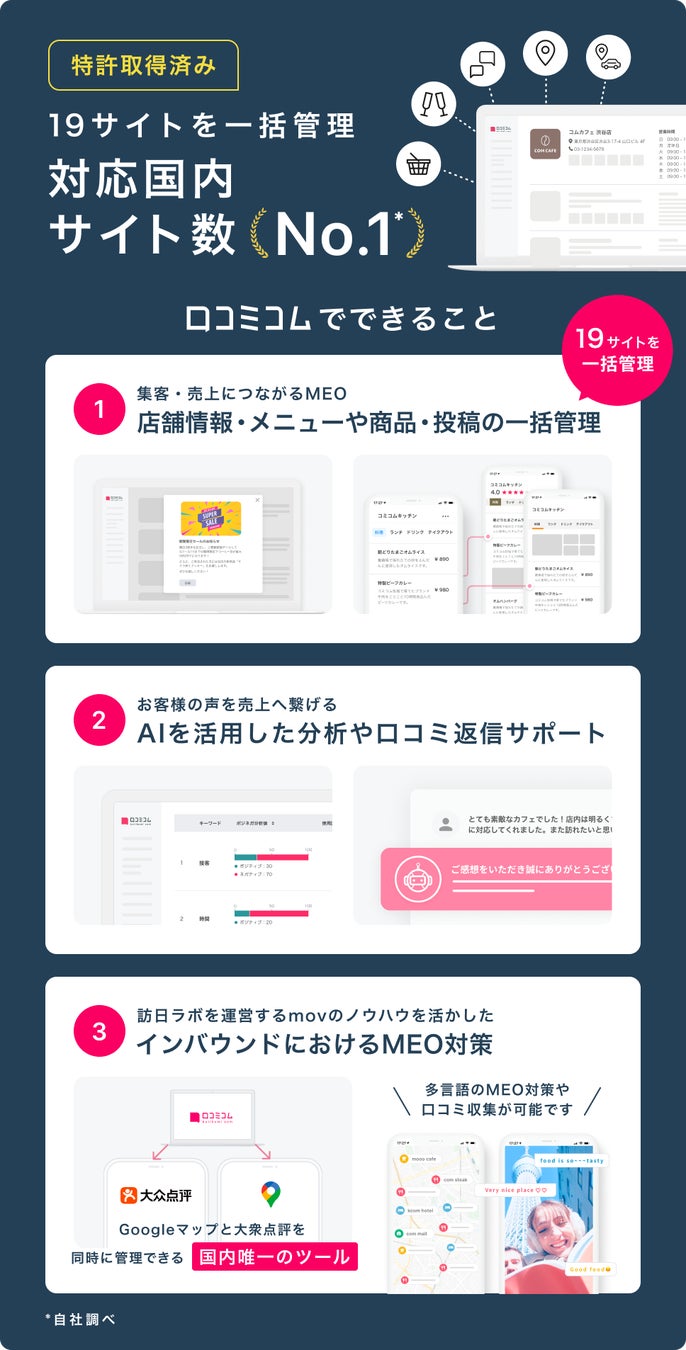 > <その1> 19サイトと連携!店舗情報・メニューや商品・投稿を一括管理