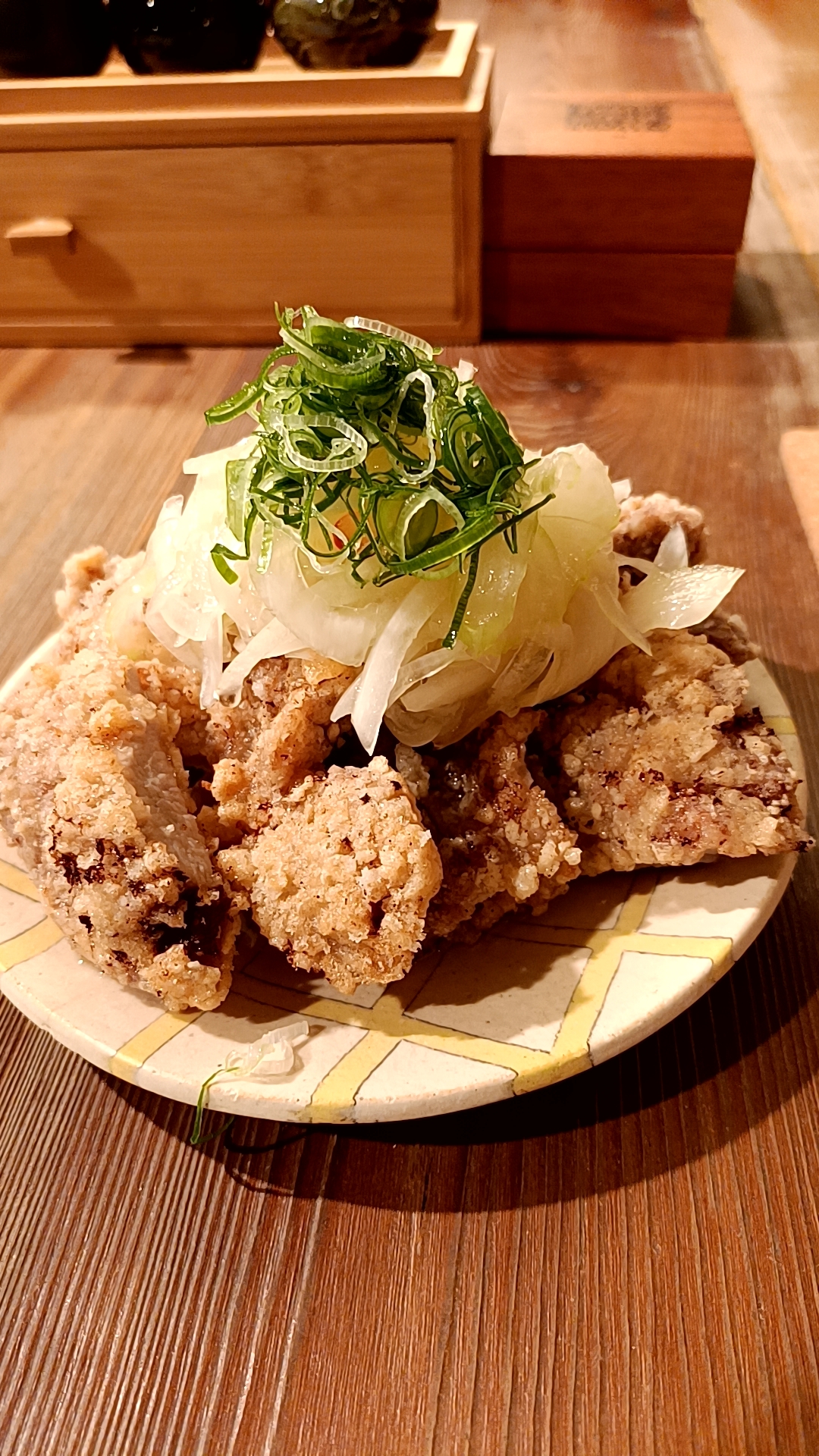 鴨の唐揚げと鴨汁を注文。鴨の唐揚げはもも肉が使用されています。口に入れた瞬間、肉汁が口に溢れてきました。生地のサクサク感との組み合わせがたまりません。セロリと玉ねぎのマリネがのっており、野菜も味わえます。